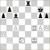 第三局。ガラガラッと駒を交換したら形勢に差がついており、白コワレフスカヤがポーン得。そのまま終盤になって右の図に。不利ながら、黒ステファノバはビショップをc6に引き付けて粘っている。さて、ここで彼女は34...g5でポーンを交換した。意味は何かな、と思って見ていると、h筋を空きにして38...Rh8。白王の側面を突きたかったのだ。この構想が良く、参考になった。黒ルックはg2まで侵入して、白のgポーンを裏から狙う。白はそれが気になり駒を好きに動かせない。対して黒は、最後は48...Kxc4なんて手が実現して駒損を回復。コワレフスカヤはあきらめてドローを受け入れた。かくて私のステファノバが10代目の女王である。おめでとう。