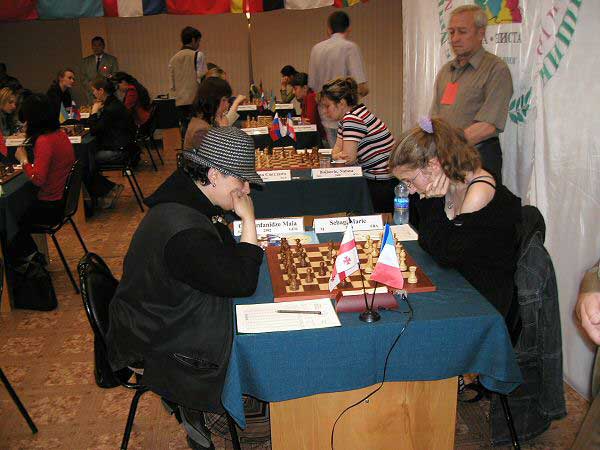 いただいたメールによると「シロフの奥さんです。強敵」。両者は昨年のWijk aan Zeeで対戦しましたが、このときは31手でドロー(黒コステニク=グリュンフェルド)。