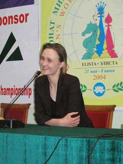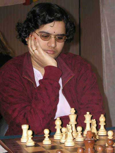コネルー(1987〜)はインド南東部アンドラブラデシュ州出身。チェスを覚えたのは5歳のとき、プロの指導によらず父親がコーチをつとめていたそう。世界ジュニア・ガールズ選手権をU10、12、14と制覇。01年、ジュニア・チャンピオン。02年、15歳でGMに。03年、アジア選手権優勝。現在、国内総合ランク8位。