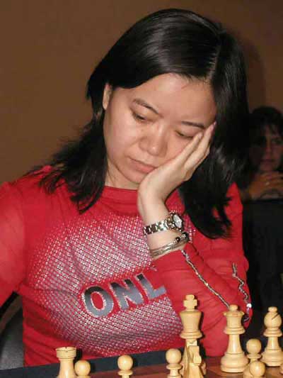 20世紀初めの上海から中国チェス界の活動はあったようです。中国人プレーヤーがはじめてGMに勝ちチェス界に衝撃を与えたのは65年。その後、文化大革命によるブランクがあり、国際舞台復帰はブエノスアイレス・オリンピアード78。91年、ソ連のチェス雑誌が「中国現象の到来」と題する記事を掲載。同年、謝軍(Xie Jun)がチブルダニゼをやぶり女子世界チャンピオンに。「グルジア現象」から「中国現象」へ。99年、謝軍がGalliamova(ロシア)をやぶり世界チャンピオンに復帰。おおかたの予想をくつがえしたこの勝利により、中国チェス界への評価は不動のものとなったようです。中国から8人が選出された今大会、サバイバーは許c華のみ。さて。