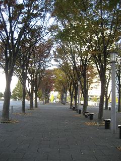 ↑美術館前(例の階段を上りきった辺り)。けやき並木は残っているようです。すっかり紅葉していますね。